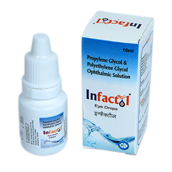 INFACTOL Ophthalmic Solution contains Propylene glycol and Polyethylene glycol. The combination acts as a lubricant. These compounds form soft gel when combined to natural tear pH, thus uses a unique mechanism of action, provide extended lubricant and surface protection of eye.